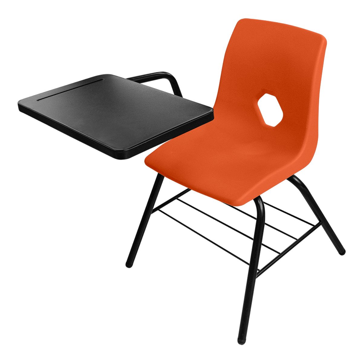 Pupitre tradicional, equipado con parrilla porta libros. Disponible con paleta rectangular o tipo raqueta.